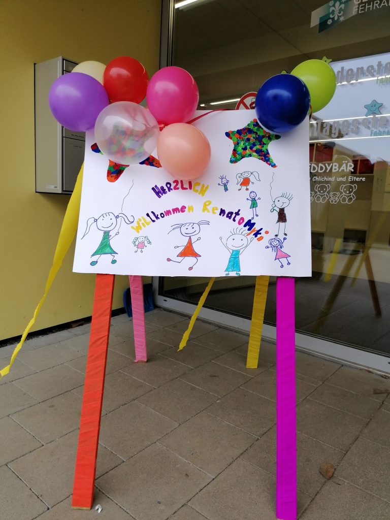 Für den Besuch bastelten die Kinder, passend zu unserem Thema «Fasnacht», Deko für die Räumlichkeiten, für das Personal sowie für sich selbst. Danach durften wir Renato mit den selbstgebastelten Krawatten bei uns in Fehraltorf begrüssen.